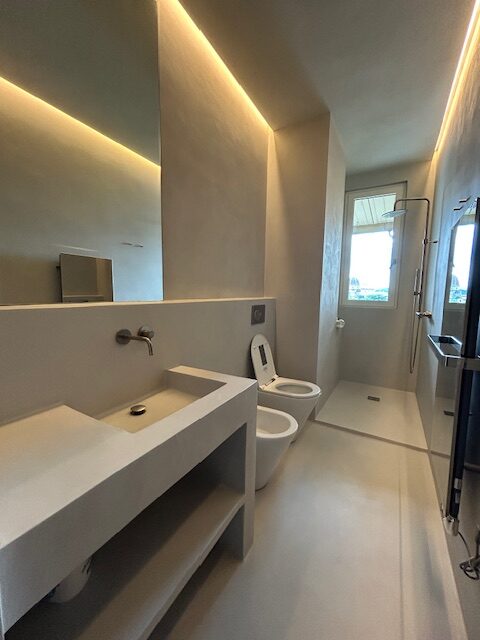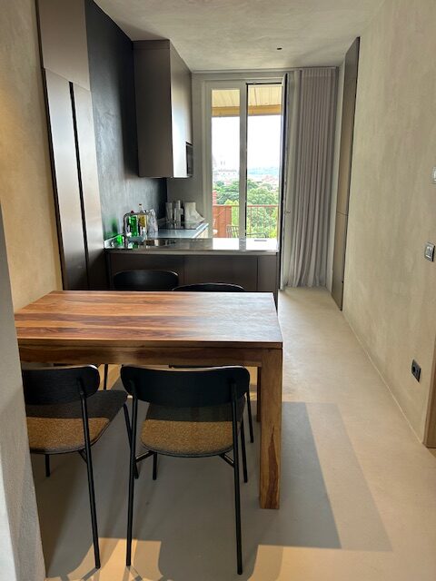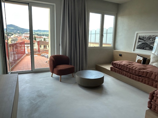 Lovely living area with open-plan kitchen, two livable terraces, master bedroom with study, large bathroom with shower.